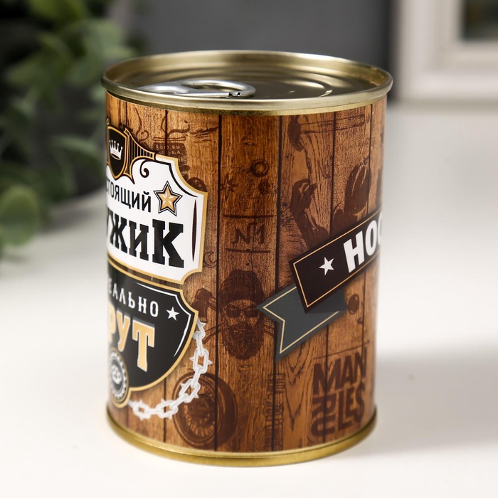 - Оригинальная упаковка: металлическая банка не только защищает носки, но и делает их стильным подарком, который приятно дарить и получать.