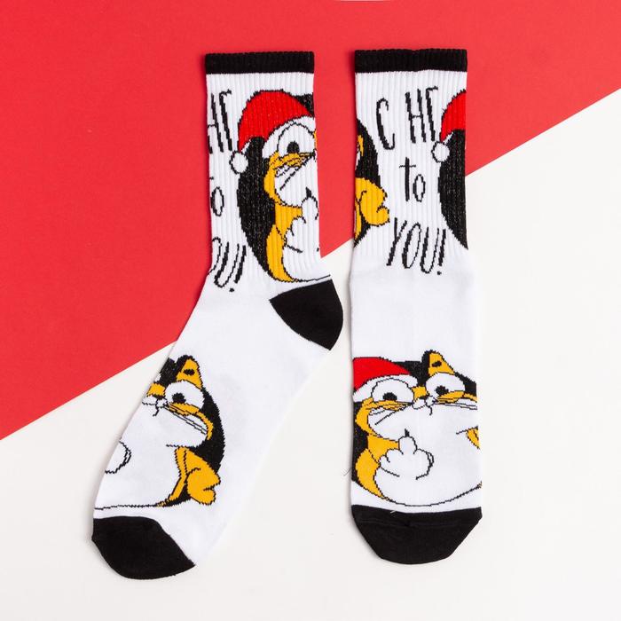 Носки новогодние мужские KAFTAN "F*ck" размер 41-44 (27-29 см), белые — Характеристики