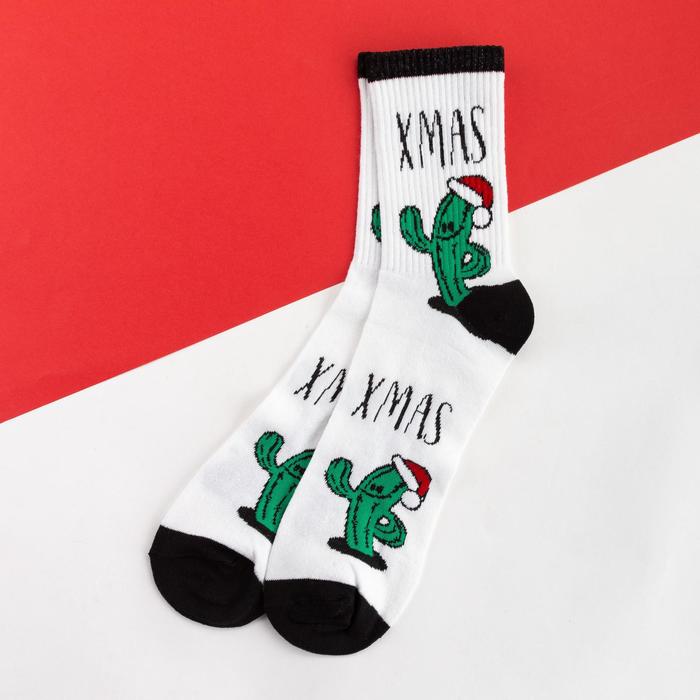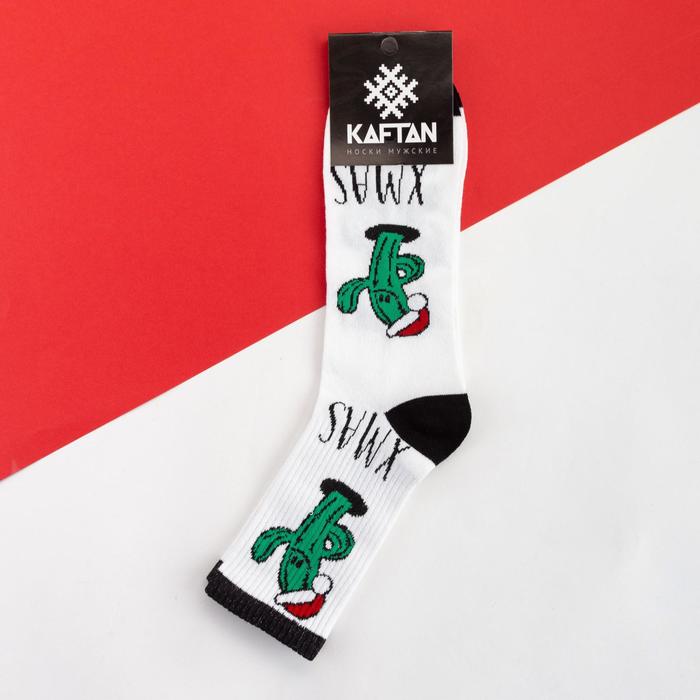 Носки новогодние мужские KAFTAN «Кактусы» размер 41-44 (27-29 см), белые — Характеристики