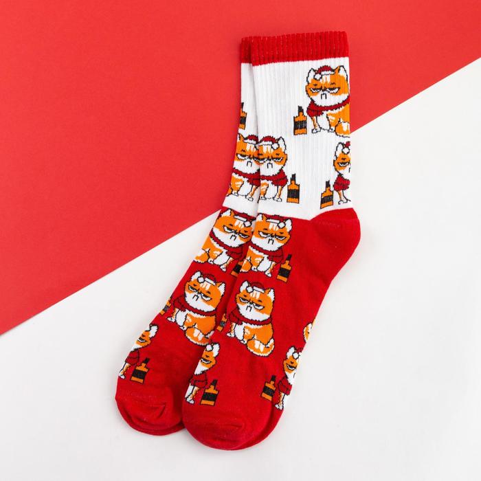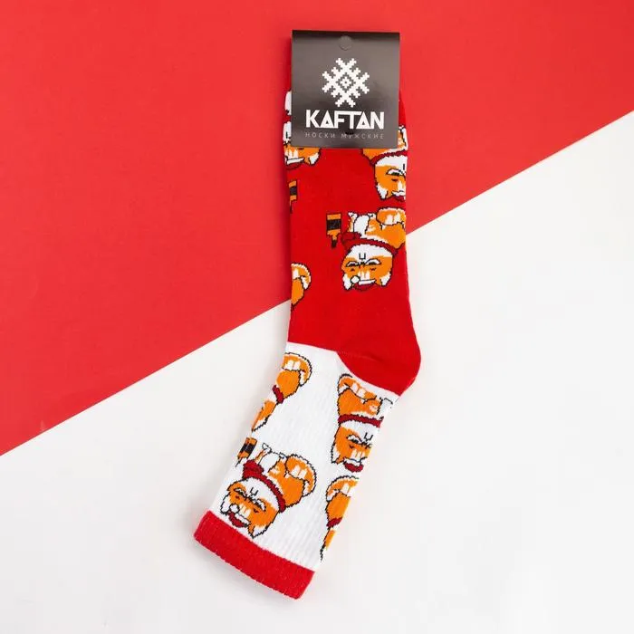Носки новогодние мужские KAFTAN «Кот» размер 41-44 (27-29 см), красные — Характеристики