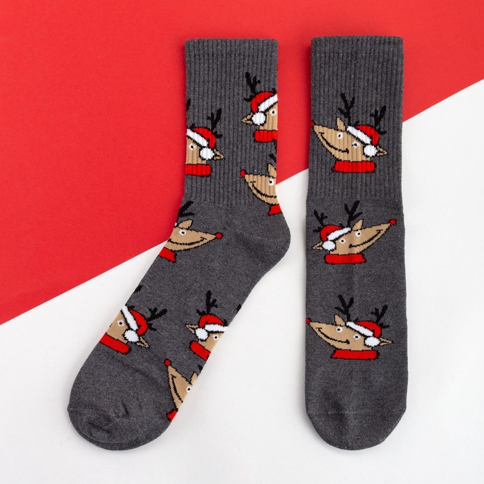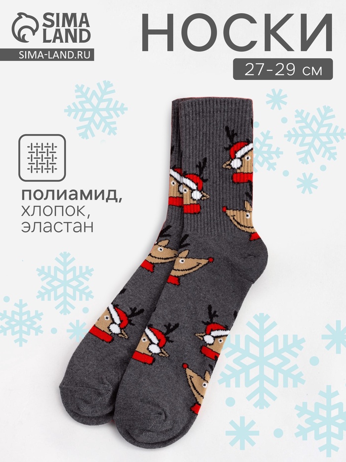 Носки новогодние мужские KAFTAN «Олени», размер 27-29 см, серые — Характеристики
