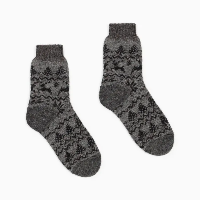 Носки новогодние мужские шерстяные "Орнамент-зима" цвет тёмно-серый, размер 25 — Характеристики