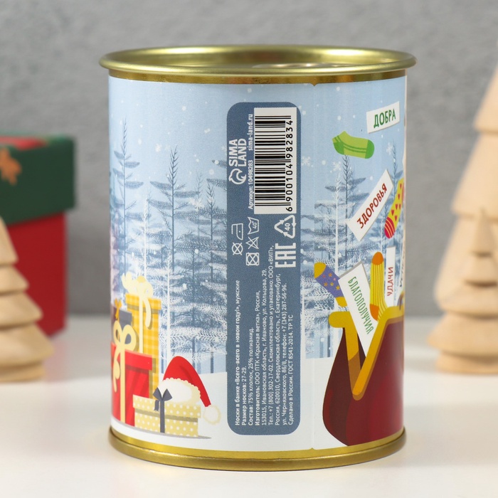 Носки новогодние мужские в банке «Всего-всего в новом году», цвет чёрный — Характеристики