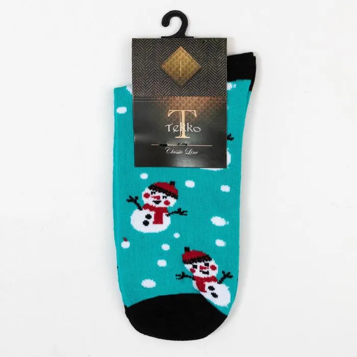 Носки новогодние мужские«Снеговики» цвет бирюзовый, размер 25 — Характеристики
