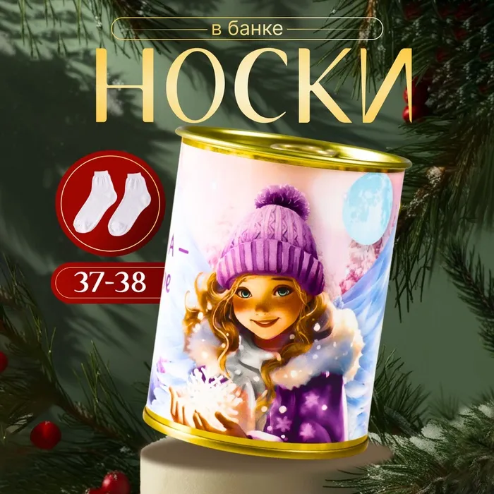 Носки новогодние женские в банке «Каждая зима - маленькое чудо», цвет белый — Характеристики