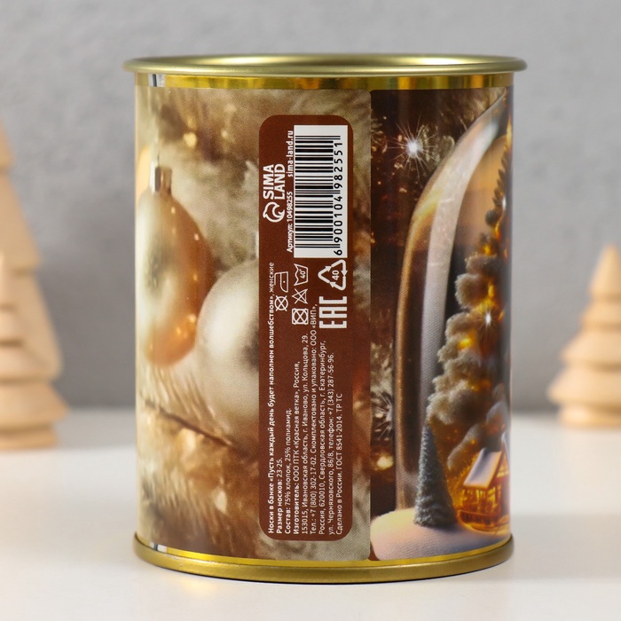 Носки новогодние женские в банке «Пусть каждый день будет наполнен волшебством», цвет белый — Характеристики