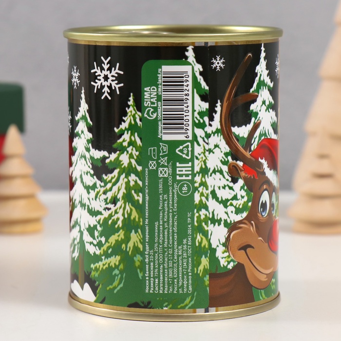 Носки новогодние женские в банке «Все будет хорошо! Не пессимиздите!», цвет белый — Характеристики