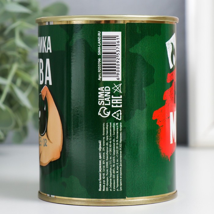 Носки подарочные в банке «Клуб настоящих мужиков», чёрные — Характеристики