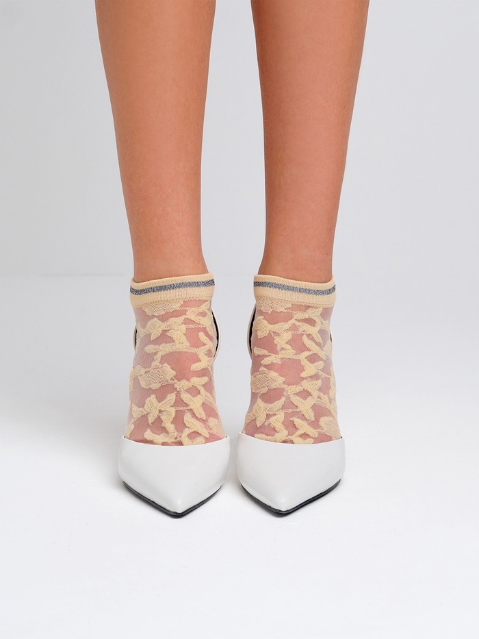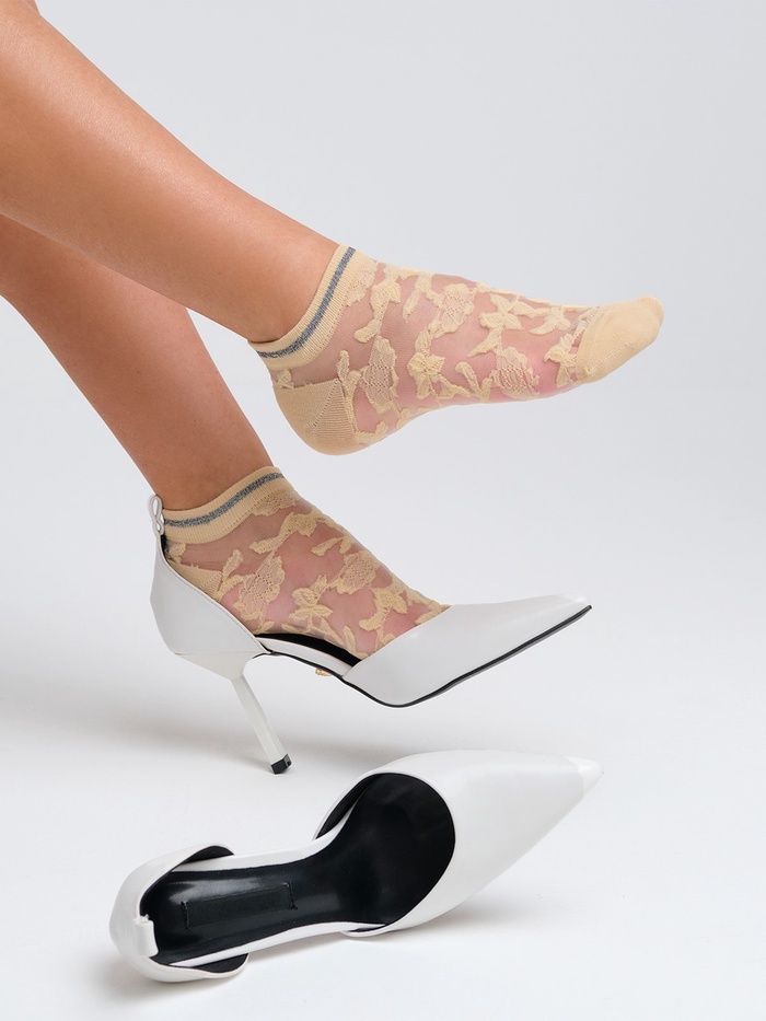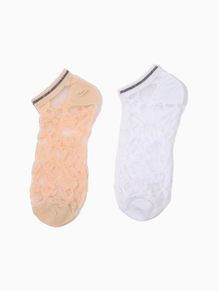 Носки стеклянные женские «Цветочки», набор 2 пары, размер 35-37 (22-25 см), цвет белый, бежевый — Характеристики