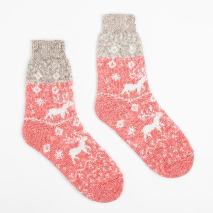 Носки женские новогодние шерстяные "Невада-олень", цвет красный, р-р 23