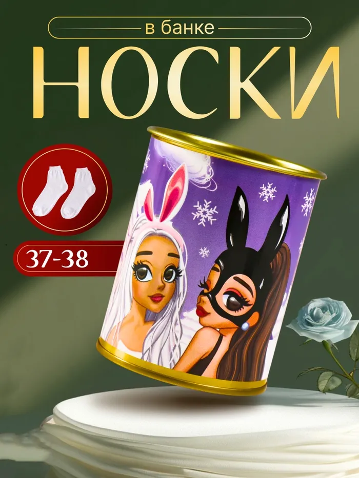 Носки женские белые банке «С новым годом, детка» — Характеристики