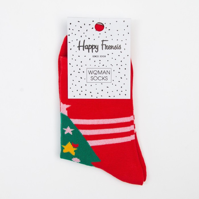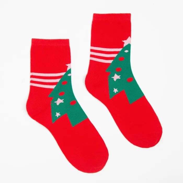Носки женские «Ёлка в звездах», цвет красный, размер 23-25 — Характеристики