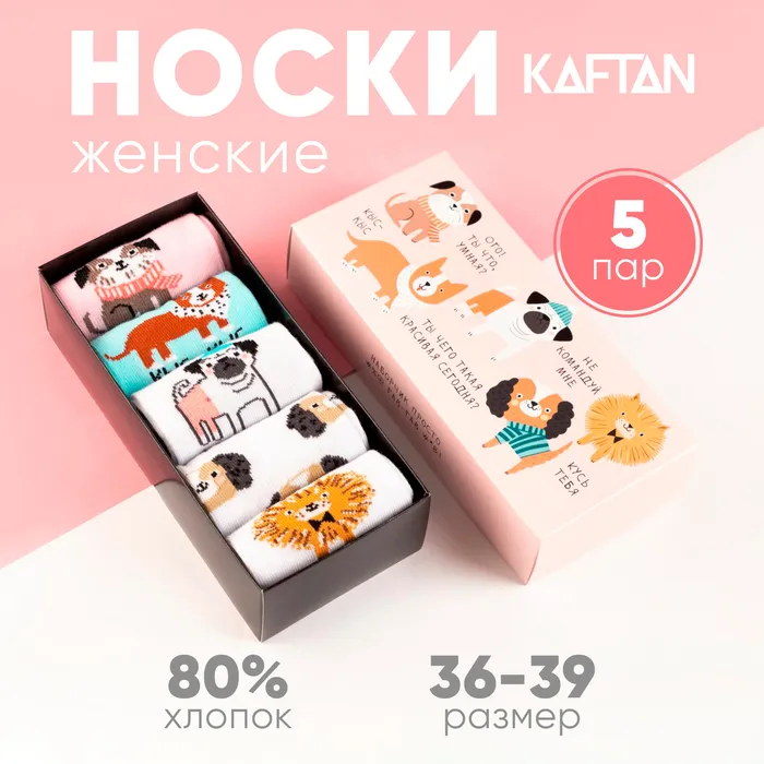 Носки женские KAFTAN «Гав-гав», набор 5 пар, р. 36-39 (23-25 см) — Характеристики