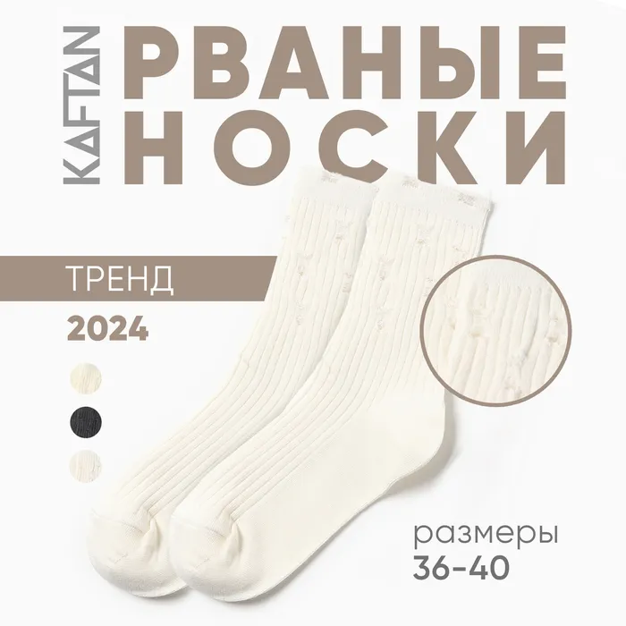 Носки женские KAFTAN рваные в рубчик размер 36-40 (23-25 см), белый — Характеристики