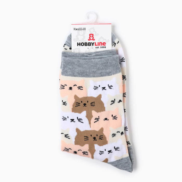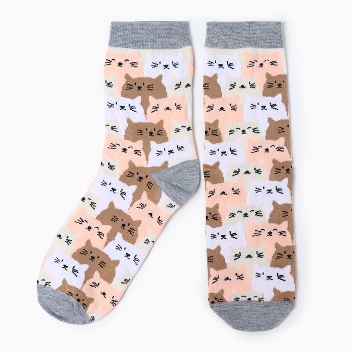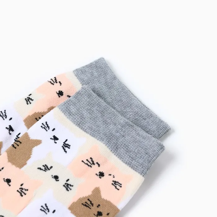 Носки женские "Котики", цвет белый/коричневый/розовый, размер 36-40 — Характеристики