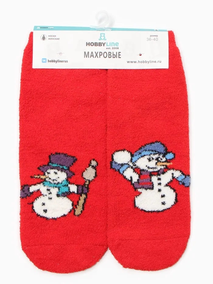Носки женские махровые Hobby Line «Дружные снеговички», красные, размер 36-40 — Характеристики