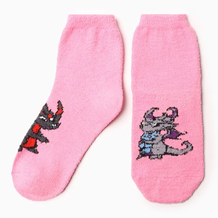 Носки женские махровые «Семья драконов», цвет розовый, размер 36-40