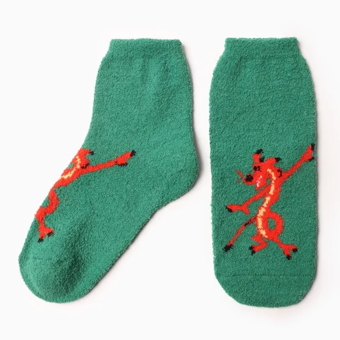 Носки женские махровые «Танцующий дракон», цвет зелёный, размер 36-40 — Характеристики
