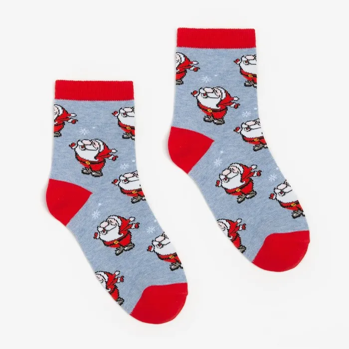 Носки женские новогодние «Дед Мороз», цвет светло-голубой, размер 23-25 — Характеристики