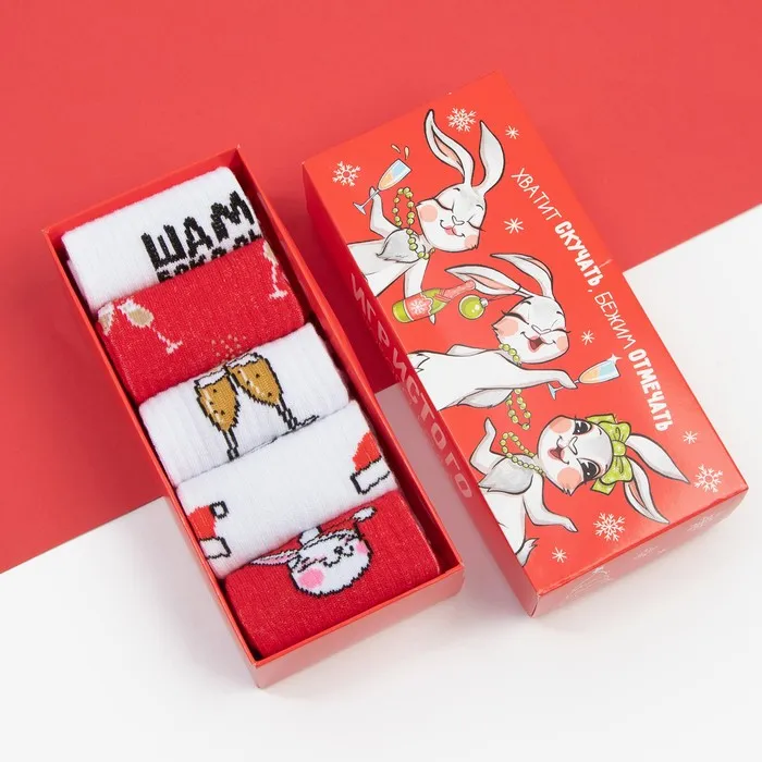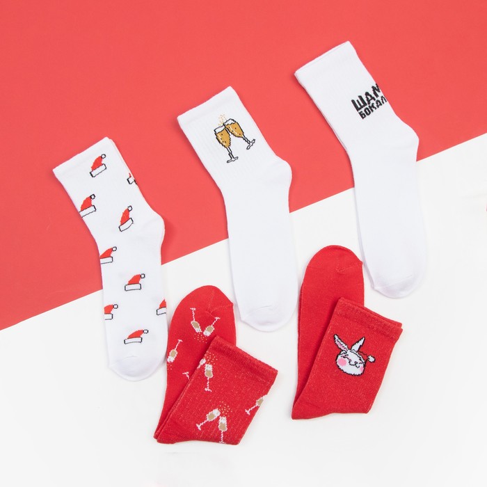 Носки женские новогодние KAFTAN «Зайки» размер 36-39 (23-25 см), набор 5 пар — Характеристики