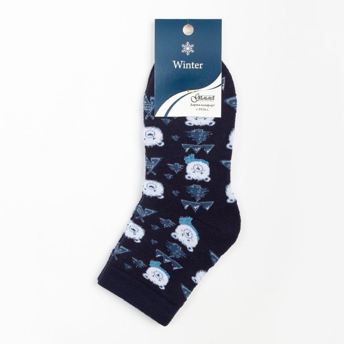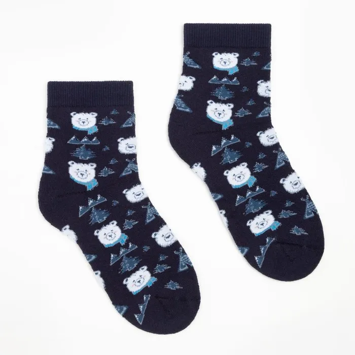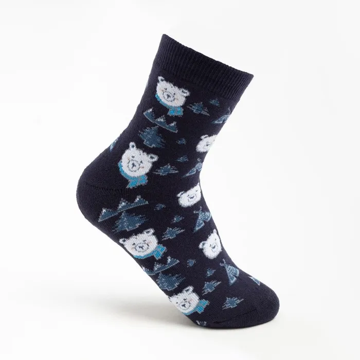 Носки женские новогодние махровые «Мишки», цвет тёмно-синий, размер 23-25 — Характеристики