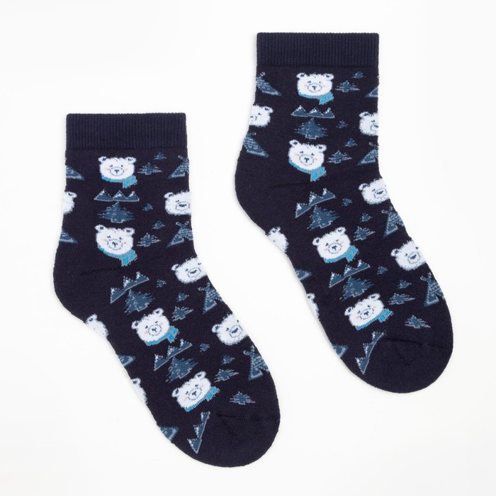 Носки женские новогодние махровые «Мишки», цвет тёмно-синий, размер 23-25