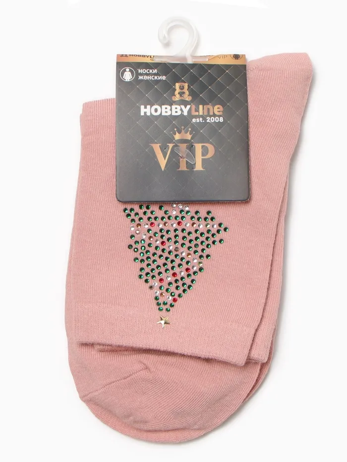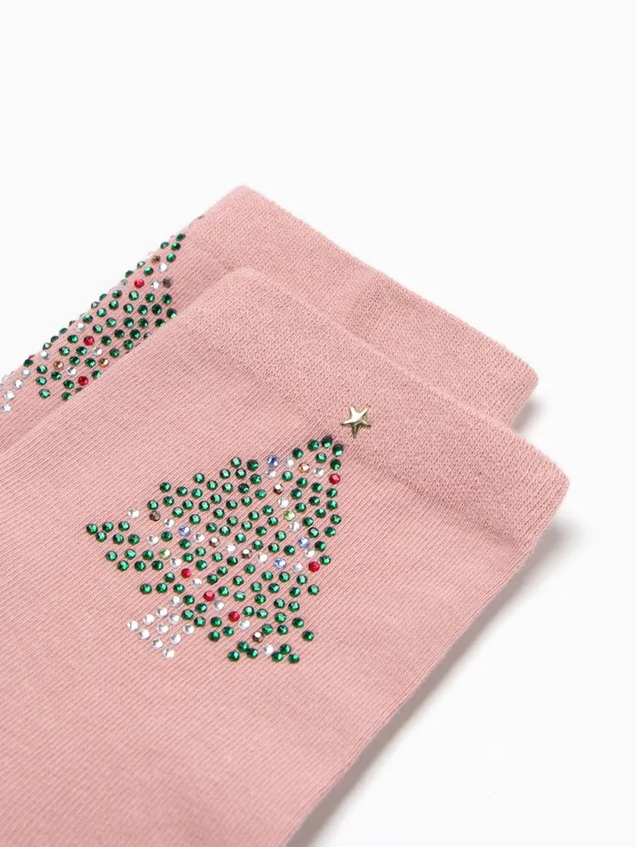 Носки женские новогодние махровые «Слочка из страз», розовые, размер 36-40