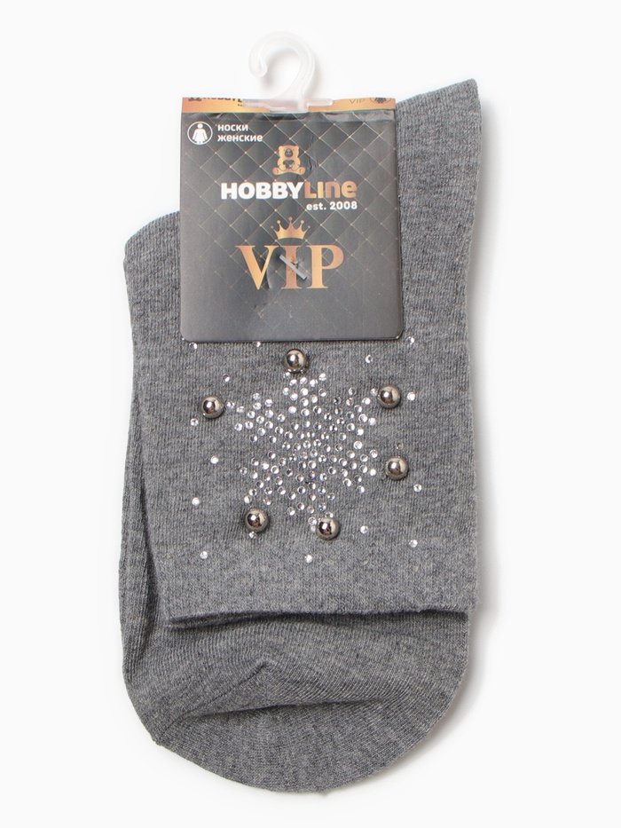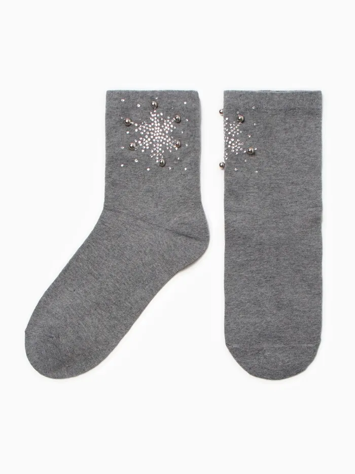 Носки женские новогодние махровые «Снежинка из страз», серые, размер 36-40 — Характеристики