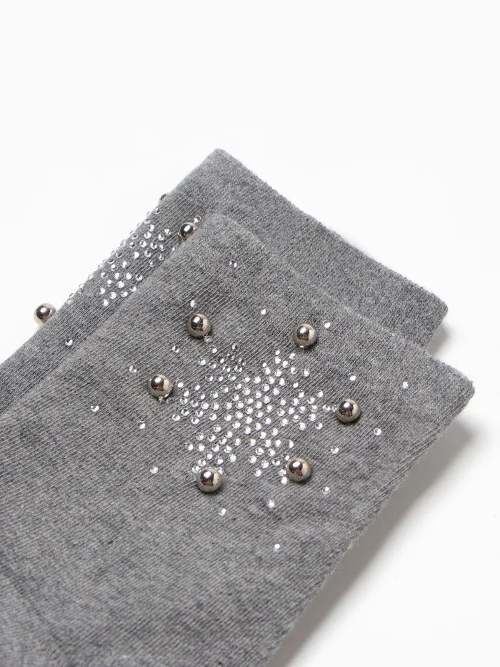 Носки женские новогодние махровые «Снежинка из страз», серые, размер 36-40