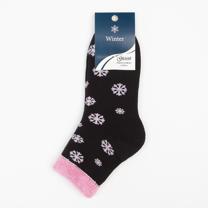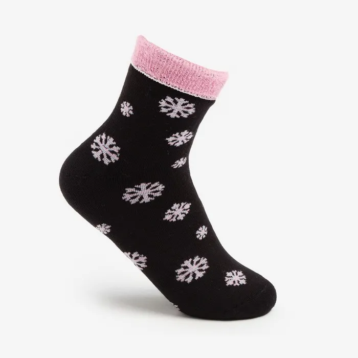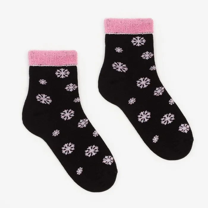 Носки женские новогодние махровые «Снежинки», цвет чёрный, размер 23-25 — Характеристики