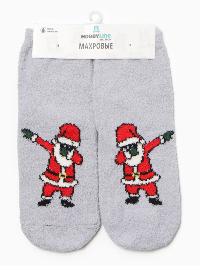 Носки женские новогодние махровые «Танцующий Дед Мороз», серые, размер 36-40 — Характеристики
