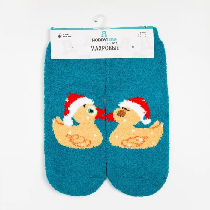 Носки женские новогодние махровые «Уточки», цвет голубой, размер 36-40 — Характеристики