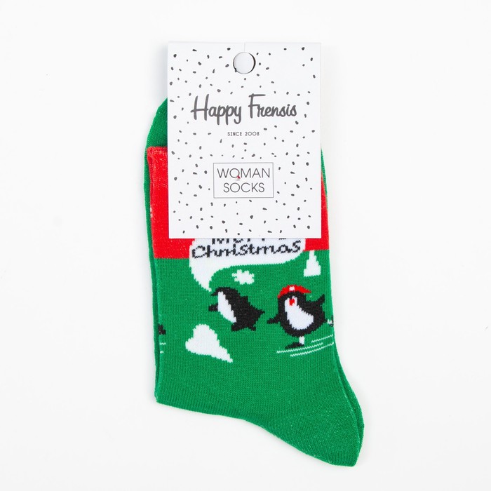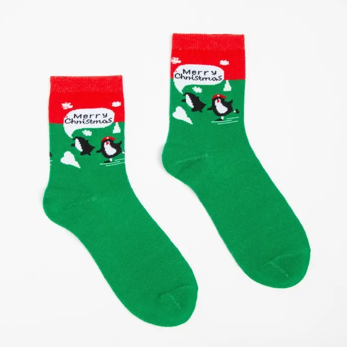 Носки женские новогодние «Пингвин», цвет зелёный, размер 23-26 — Характеристики
