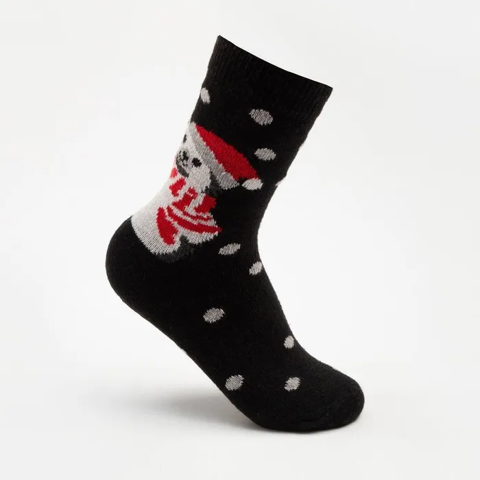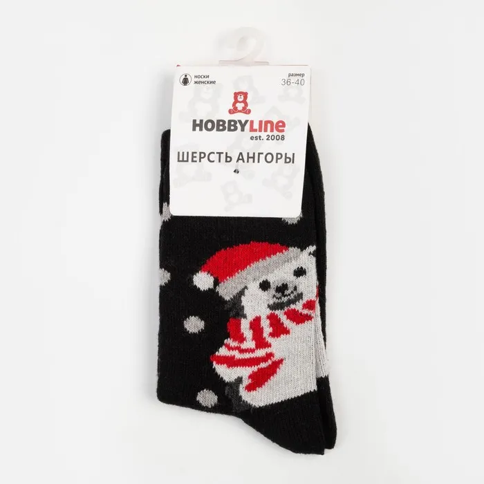 Носки женские новогодние шерстяные «Медведь в шапке», цвет чёрный, размер 36-40 — Характеристики