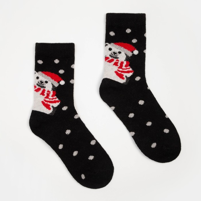 Носки женские новогодние шерстяные «Медведь в шапке», цвет чёрный, размер 36-40