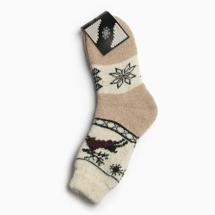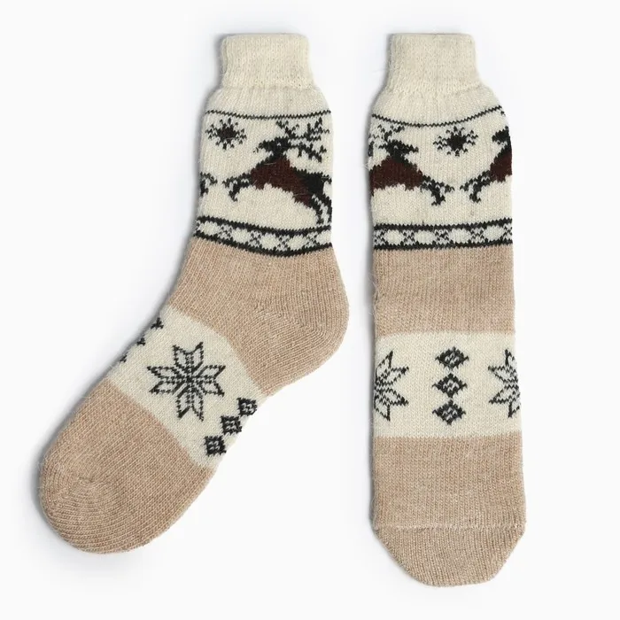 Носки женские новогодние шерстяные «Олень», цвет бежевый, размер 25 — Характеристики