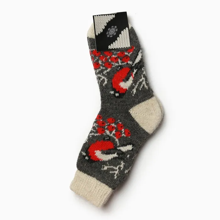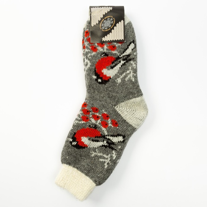 Носки женские новогодние шерстяные «Снегирь в снегу», серые, размер 25 — Характеристики