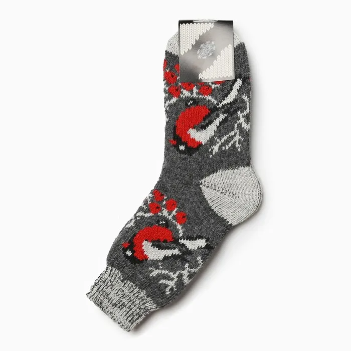 Носки женские новогодние шерстяные "Снегирь в снегу", цвет серый, размер 23 — Характеристики