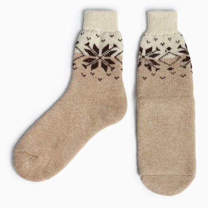 Носки женские новогодние шерстяные «Снежинка», цвет бежевый, размер 25 — Характеристики