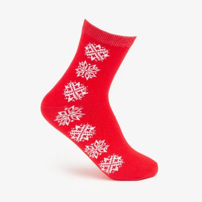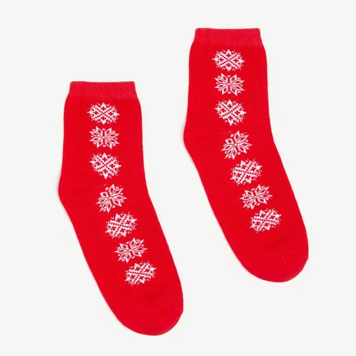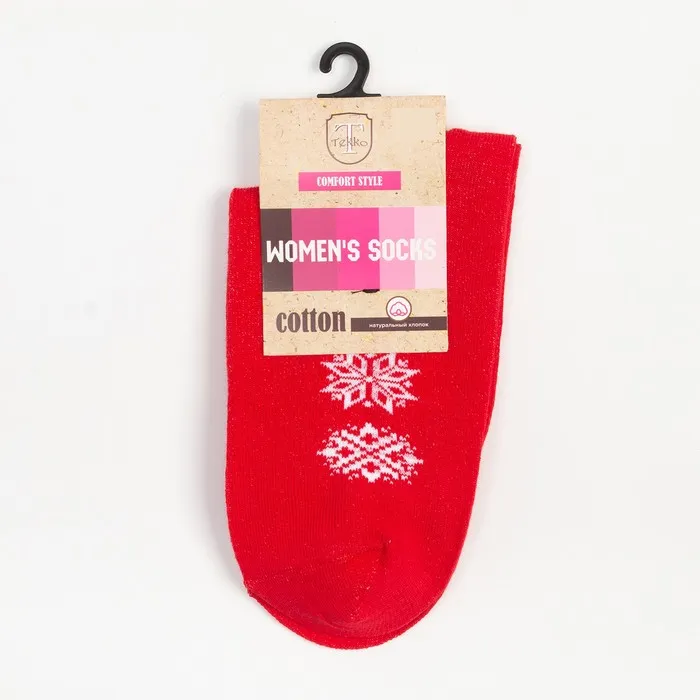 Носки женские новогодние «Снежинки» цвет красный, размер 23-25 — Характеристики