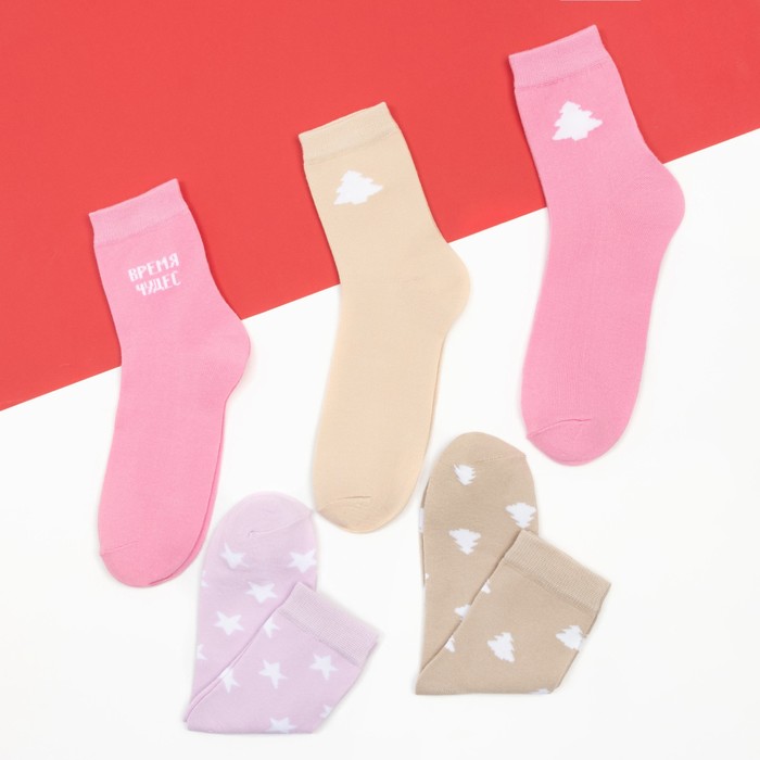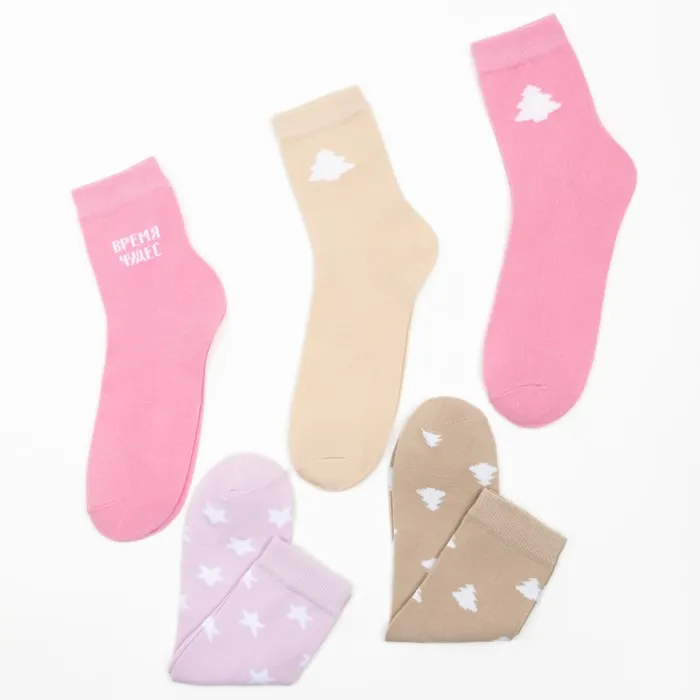Носки женские новогодние Winter размер 36-39 (23-25 см), набор 5 пар