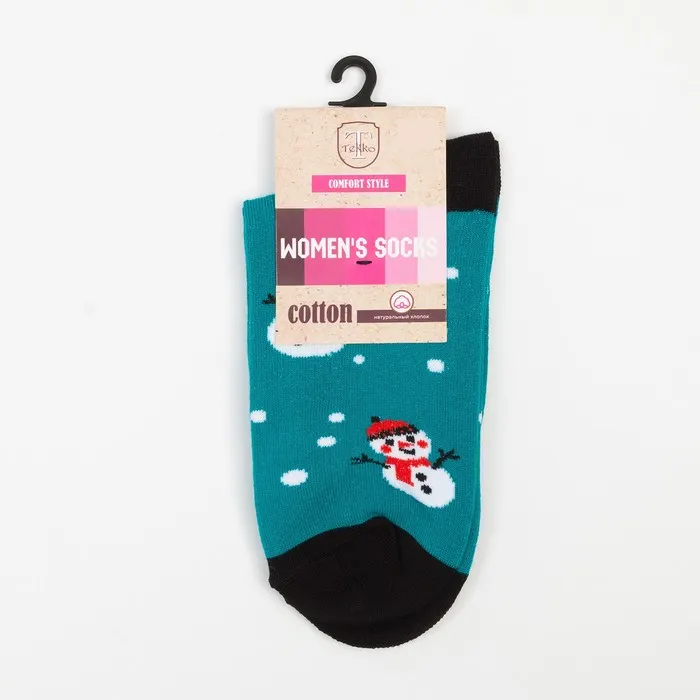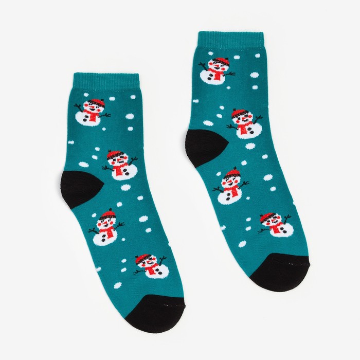 Носки женские новогодние«Снеговики» цвет бирюзовый, размер 23-25 — Характеристики