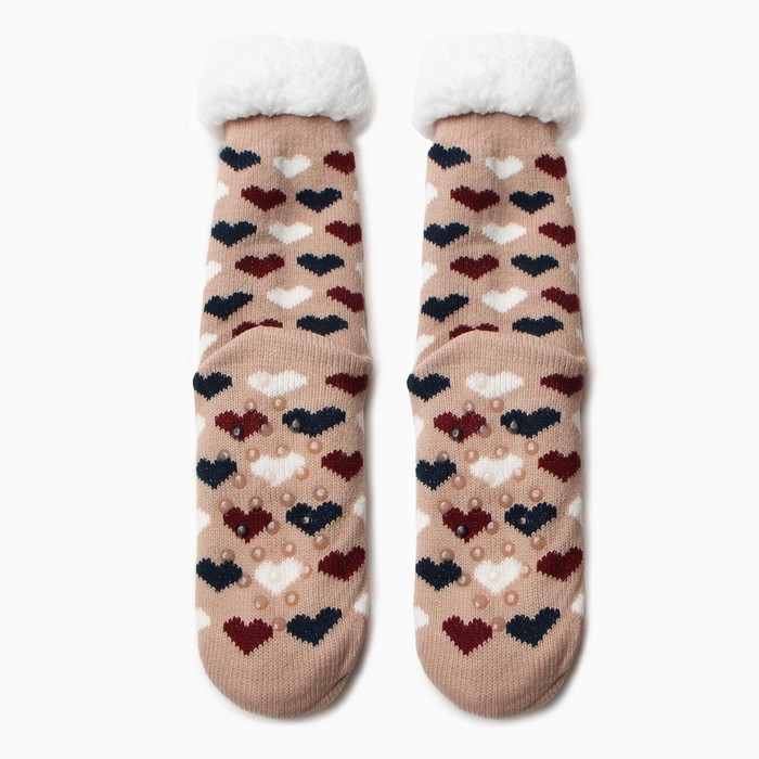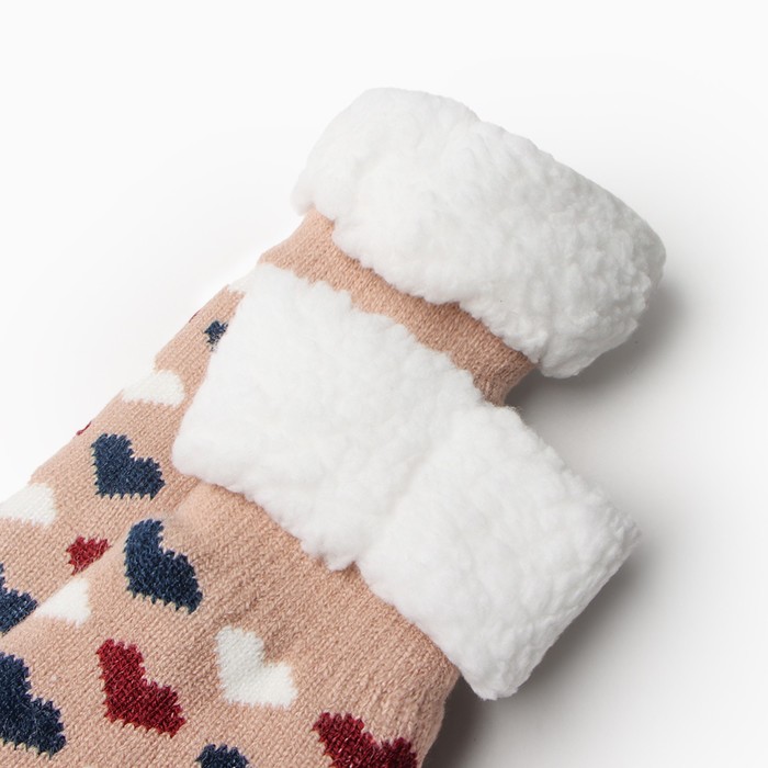 Носки женские с мехом "Сердечки", цвет бежевый, размер 36-40 — Характеристики