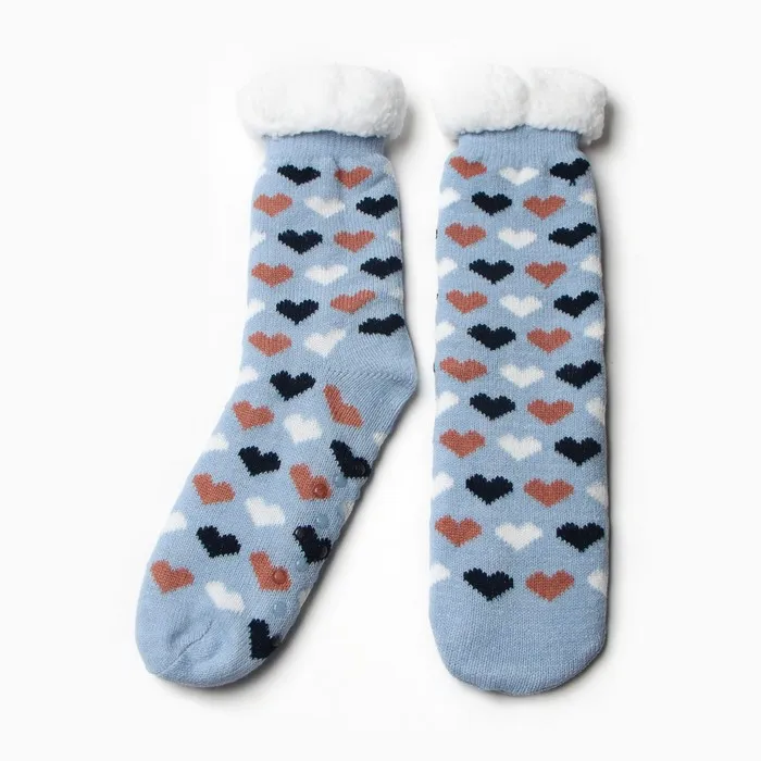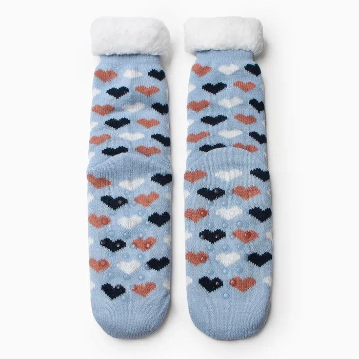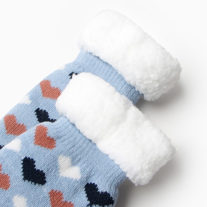 Носки женские с мехом "Сердечки", цвет голубой, размер 36-40