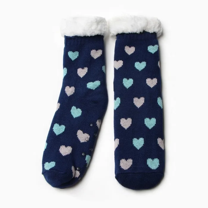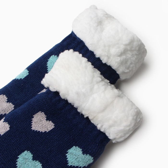 Носки женские с мехом , цвет тёмно-синий/сердечки размер 36-40