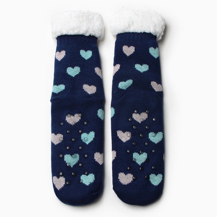 Носки женские с мехом , цвет тёмно-синий/сердечки размер 36-40 — Характеристики