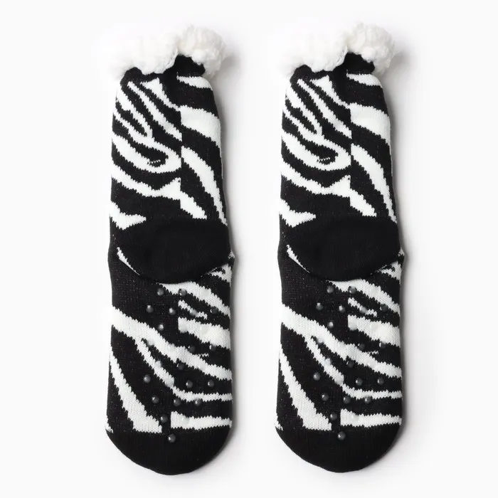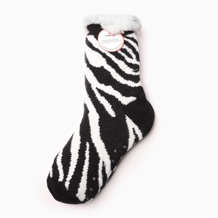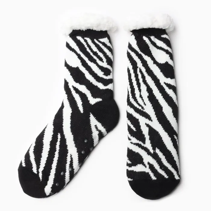 Носки женские с мехом внутри «Зебра», чёрные, размер 36-41