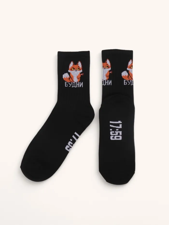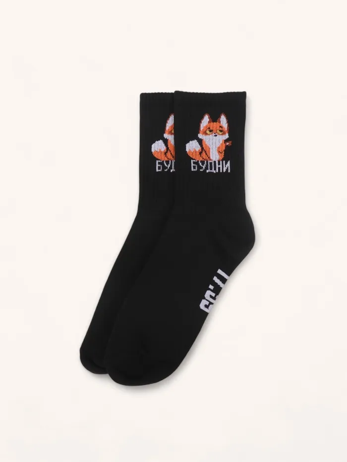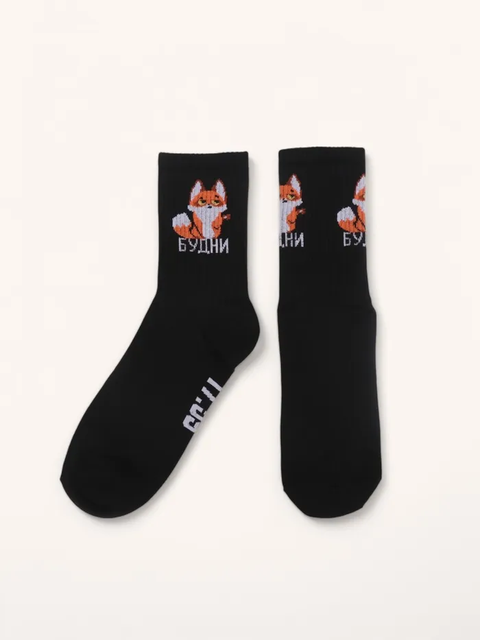 Носки женские с принтом, чёрные «Будни лисёнок» — Характеристики