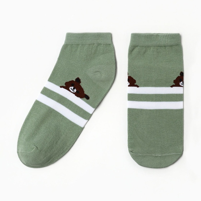 Носки женские укороченные «Медвежата», оливковые, р-р 23-25