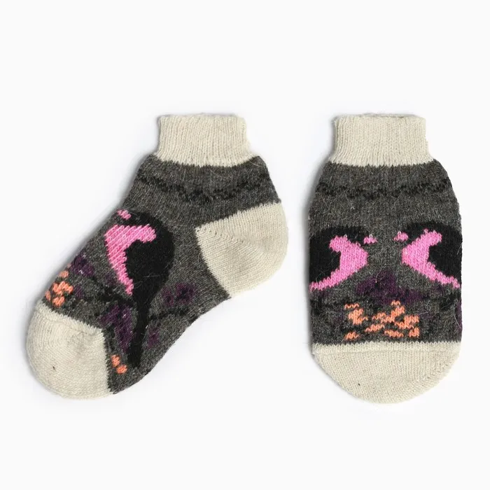 Носки женские новогодние шерстяные "Снегирь в снегу", цвет серый, размер 23